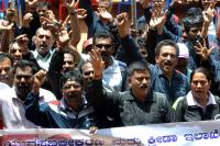 Members of Sports Authority of India and sportspersons and athletes seen protesting to fulfill their various demands at Bennappa Park, in Bengaluru on Friday 28th August 2015
