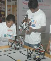 | Event Details: | A team of students at a workshop participating in the Bengaluru Regional Level Indian Robotic Olympiad creating Robots, display and evaluation organized by VTU & National Council of Science Museums, Ministry of Culture, GOI at VTU, in Bengaluru on Sunday 30th August 2015 |