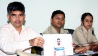 CCB police officials addressing press conference regarding MG Gokul who was arrested in the hoax call to Kempegowda International Airport case, in Bengaluru on Monday 7th September 2015