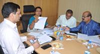 Minister Umashree seen referring to the files during her surprise visit at the Woman and Child Development Department at MS building, in Bengaluru on Tuesday 15th September 2015