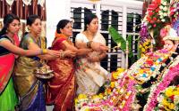 MLC Tara and others performing Gowri pooja on the occasion of Gowri Ganesha festival at Pattabhi Ramanagar, in Bengaluru on Wednesday 16th September 2015