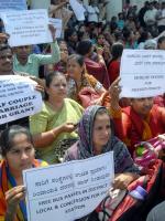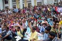 Members of District Deaf Association of Karnataka protesting and demanding to fulfill their various demands at Town Hall, in Bengaluru on Monday 28th September 2015