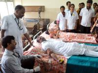 | Event Details: | A paramedical staff helps Health Minister UT Khader during a massive Blood Donation camp on the occasion of World Blood Donation Day organised by Karnataka Health Department at Government Maharani Womens College, in Bengaluru on Thursday 1st October 2015 |