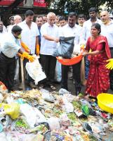 MLA BV Vijaya Kumar with Councilor Nagaratna Ramamurthy and others partake in Swacch Bharath Abhiyan to mark Gandhi Jayanti Celebrations at Pattabhi Ramanagara, in Bengaluru on Friday 2nd October 2015