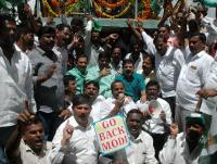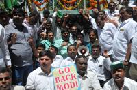 JDS party members protesting against the PM Narendra Modi for his visit to Bengaluru City for delaying the decision on Kalasa Banduri Project at Anand Rao Circle, in Bengaluru on Tuesday 6th October 2015