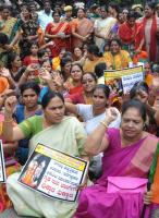 | Event Details: | BJP Mahila Morcha seen protesting against the recent rape cases in Bangalore, the protest was held at SBM Circle, in Bengaluru on Wednesday 7th October 2015 |