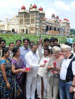 | Event Details: | Mysuru Mayor R Lingappa is seen offering roses to welcome foreign tourists, who visited the Mysore Palace this morning as the Dasara festivities are set to begin, in Mysuru on Monday 12th October 2015 |
