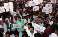 Members of All India Organisation of Chemists and Druggists participated in a protest against the online sale of medicines during the Nationwide Chemists Bundh at Freedom Park, in Bengaluru on Wednesday 14th October 2015