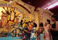 | Event Details: | Devotees seen praying to Goddess Durga on the occasion of Durga Pooja at RBANMS ground, organised by Bengali Association, in Bengaluru on Monday 19th October 2015 |