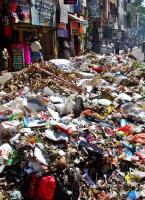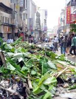 Festival garbage being dumped on road side at Avenue Road, in Bengaluru on Saturday 24th September 2015