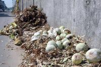 Festival garbage being dumped on road at Bellary road, in Bengaluru on Sunday 25th October 2015