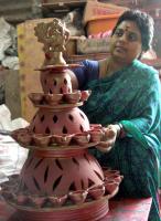| Event Details: | A worker preparing deepavali lamps for the forthcoming Deepavali festival at Pottery Town, in Bangalore on 26th October of 2015, in Bengaluru on Monday 26th October 2015 |