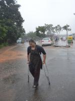 People, Cars and motorists negotiate the waterlogged road due to rain