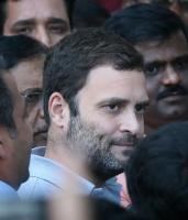 AICC vice president Rahul Gandhi coming outside the college after his interaction with Mount Carmel students in Vasanthanagar, in Bengaluru on Wednesday 25th November 2015