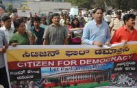 | Event Details: | Software professionals and volunteers affiliated to BJP IT Cell and citizen for democracy led by Tara, MLC held a meeting and a walk for democratic rights from Freedom park to Gandhi Statue near Anand Rao Circle, demanding “LET PARLIAMENT WORK”, in Bengaluru on Monday 14th December 2015 |