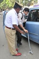 A traffic police helps a physically challenged person to reach Kote Venkateshwara Temple, in Bengaluru on Monday 21st December 2015