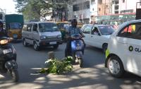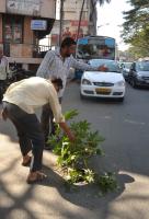 People covered the damaged JC road, making it easy and safe for the motorists to travel, in Bengaluru on Wednesday 23rd December 2015