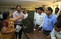 Council election officers getting prepared to depart to their respective council election centers with the ballot boxes at Revenue Bhavan, in Bengaluru on Saturday 26th December 2015