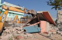 BDA demolition drive of illegal occupancy at Malagala Papareddypalya, Nagarbhavi ring road, in Bengaluru on Tuesday 5th January 2016