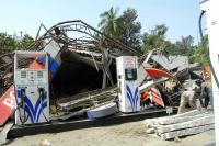 Petrol bunk being demolished at Corporation Circle, in Bengaluru on Sunday 14th February 2016