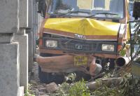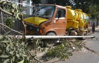 A water tanker lost its control due to break failure and hit the compound wall of Ravindra Kalakshetra in the early morning, in Bengaluru on Wednesday 17th February 2016