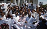 Members of Jewelers association staged a protest against the excise tax imposed by the central government in the recent budget announcement at Town Hall, in Bengaluru on Friday 4th March 2016