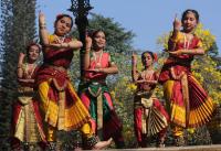 Children of Natyaradhana School of Dance Performing the Bharathanatyam dance during the Vehicle Free Sunday at Cubbon park, in Bengaluru on Sunday 6th March 2016