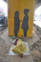 A women seen sleeping in shade in this hot weather below the flyover over on Double Road Temple , in Bengaluru on Monday 21st March 2016