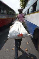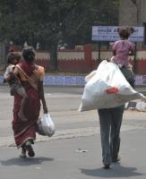A man was seen carrying his daughter with luggage on his back in this hot weather at KR Circle, in Bengaluru on Monday 21st March 2016