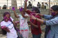 Students seen playing with colors on the occasion of Holi Festival, in Bengaluru on Wednesday 23rd March 2016