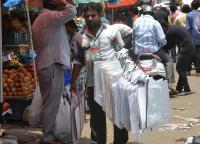 Some people were seen using the plastic bags at the busy KR Market and have no taken the ban seriously, in Bengaluru on Tuesday 5th April 2016