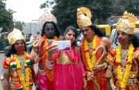 | Event Details: | Artists dressed like Sri Rama and Hanuman distribute Panaka and Majjige, on the eve of Sri Ramanavami Festival near Anand Rao Circle, in Bengaluru on Friday 15th April 2016 |