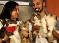 People seen with pet cats in the International Cat show 2016 at Rotary House at Lavelle Road, in Bengaluru on Sunday 17th April 2016