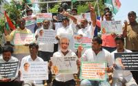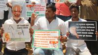 Members of Bengaluru Youth Congress Committee protesting against Central Government at Gandhi Statue, in Bengaluru on Friday 22nd April 2016