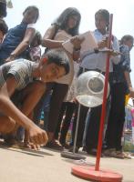 | Event Details: | Children are seen looking at the demonstration where no shadow was visible at noon when the Sun was exactly at Zenith, during a press conference at Jawaharlal Nehru Planetarium, in Bengaluru on Monday 25th April 2016 |