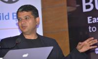 Beerud Sheth, Co Founder and CEO, Gupshup addressing press conference at Hotel Royal Orchid Central, in Bengaluru on Tuesday 26th April 2016