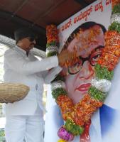 Vatal Nagaraj floral tribute to the portrait of Dr BR Ambedkar on the occasion of his 125th Birth Anniversary at SBM Circle, in Bengaluru on Friday 29th April 2016