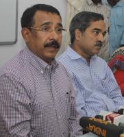 | Event Details: | Kishore Chandra, CID DGP with Pratap Reddy, ADGP seen addressing a press conference regarding the arrest of the accused Shivakumar, in the 2nd PUC question paper leak case at CID Office, Palace Road, in Bengaluru on Tuesday 3rd May 2016 |