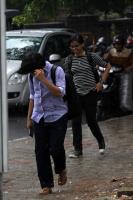 People seen covering themselves after a brief rain lashed Bangalore City after a long summer, in Bengaluru on Thursday 5th May 2016