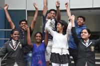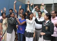 10th standard ICSE students of Venus International School in Rajajinagar, jubilant after their ICSE 10th standard results were announced, in Bengaluru on Friday 6th May 2016
