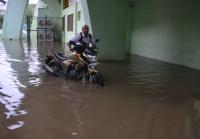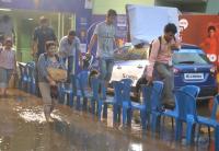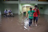 Rain water logged at Kanteerva stadium as people had to walk past the rain water with great difficulty and some vehicles were stuck in the water, in Bengaluru on Friday 6th May 2016