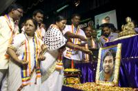 | Event Details: | Minister Satish Jarakiholi, Mavalli Shankar, Radhika, Raja Chaitanya Vemula mother of Rohit Vemula and others offering floral tribute to Rohit Vemula portrait during the Dr BR Ambedkar Jayanti celebrations at Jnana Jyothi Auditorium, in Bengaluru on Sunday 8th May 2016 |