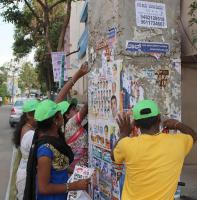 Members of BPac Civic hub clearing wall posters during their campaign on Kill Bill drive at Nandini Layout, in Bengaluru on Monday 23rd May 2016