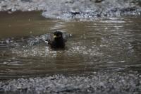 Myna Soaking in Rain Water