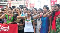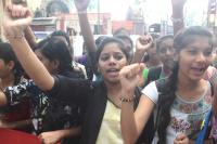Members of AIDSO protesting and demanding full fill their various demands at SBM Circle , in Bengaluru on Wednesday 1st June 2016