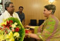 Rani Pramoda Devi invites CM Siddaramaiah for her son and Mysore royal family prince Yaduveer Krishnadatta Chamaraja Wadiyar Wedding, in Bengaluru on Saturday 11th June 2016