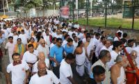 People partake in Sri Ramanuja 5K run (India first Spiritual walkathon) at Malleswaram Grounds, in Bengaluru on Sunday 12th June 2016
