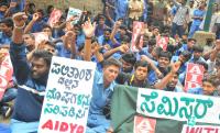 ITI Students staged a protest in front of ITI office and demanded for withdrawing Semester scheme and to check for the faulty results, in Bengaluru on Tuesday 14th June 2016