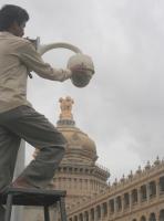 New CCTV cameras being installed in the Vidhan Soudha premises, in Bengaluru on Tuesday 5th July 2016