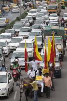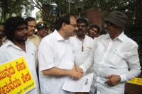 Vatal Nagaraj with supporters participated in a protest rally by riding a bullock cart to save trees during the construction of steel bridge from Basaveshwara Circle to Hebbal Flyover, in Bengaluru on Wednesday 6th July 2016